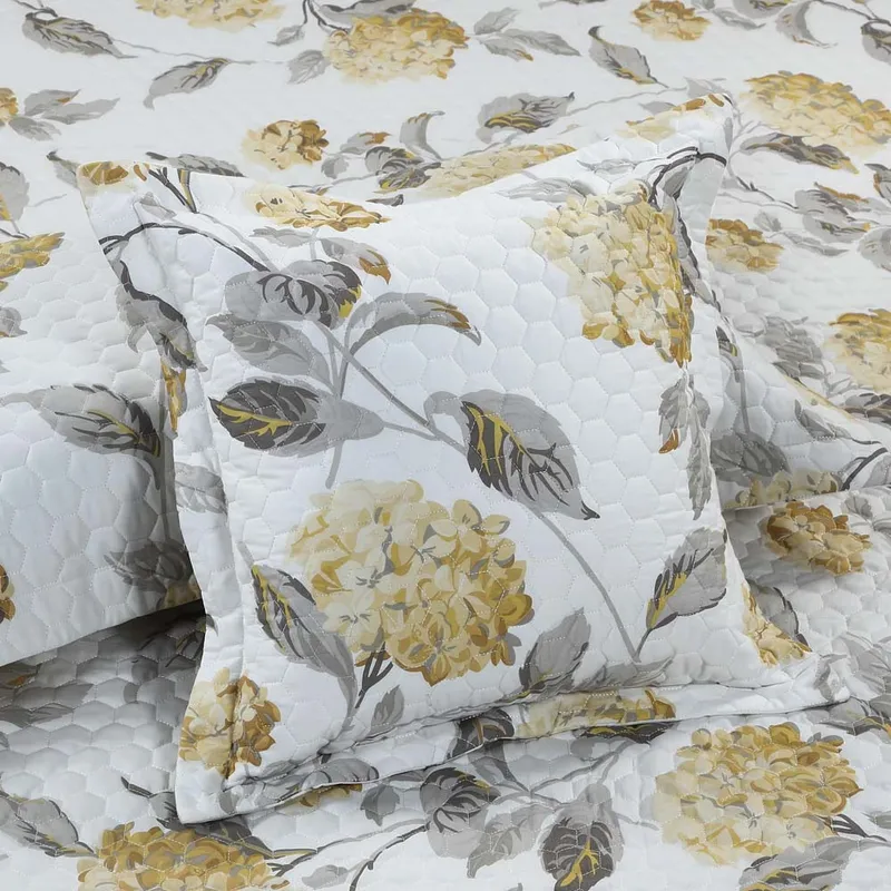 Hydras Yellow Grey Printed Double Bed Cover