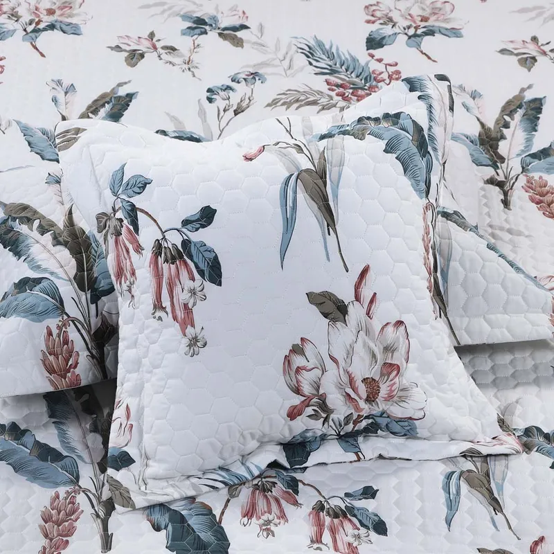 Tropic Paradise White-Blush Printed Double Bed Cover